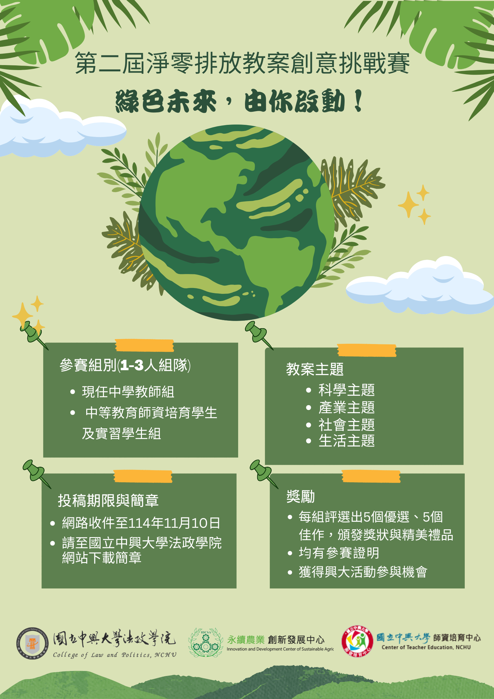 第二屆淨零排放教案創意挑戰賽:綠色未來,由你啟動!詳情請見附件。